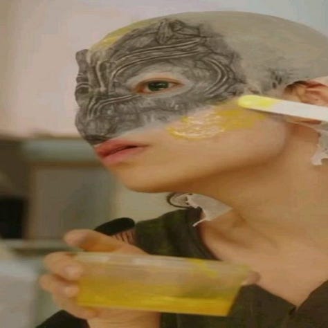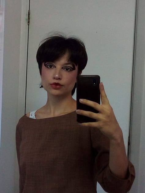 desfile da margiela artisanal em 2024 (sim o fatídico Maison Margiela Couture Spring 2024 do Galliano com maquiagem da Pat McGrath): “pela maquiagem, pelas roupas, consegui aplicar no dia a dia essa obsessão, esse ano nem fiquei tão obcecada por coisas da moda, e é do ano retrasado né, nossa”.